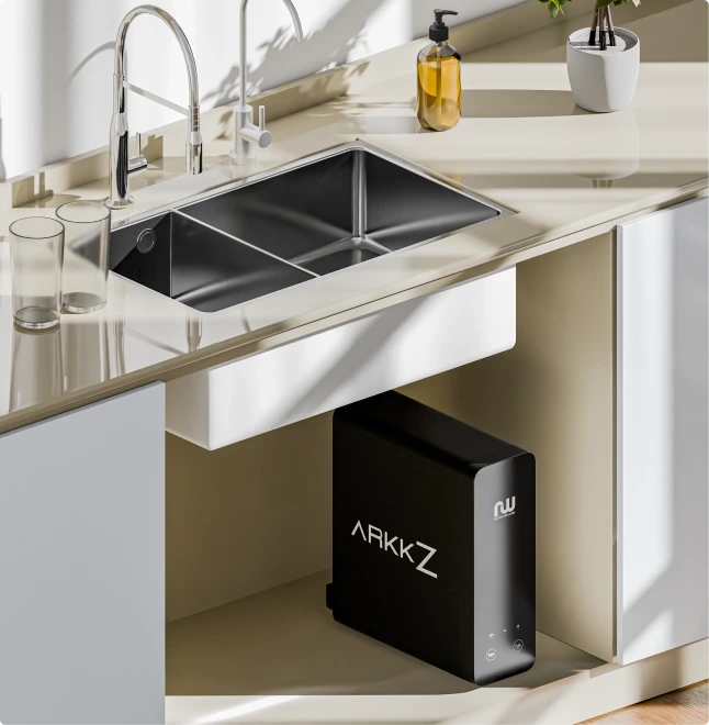 ArkkZ is an under sink reverse osmosis water filter system. Compact tankless system with direct fast flow, contaminants removal, low drain ratio providing unlimited safe drinking tap water.