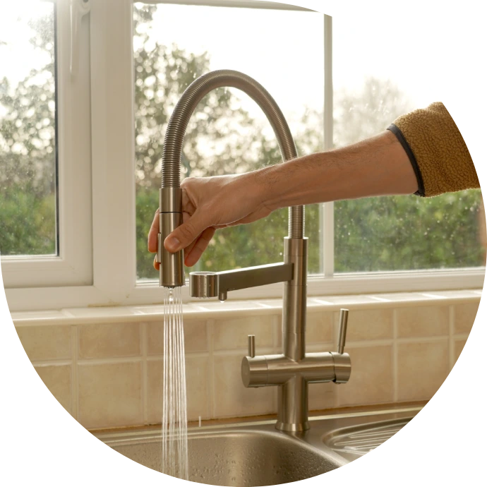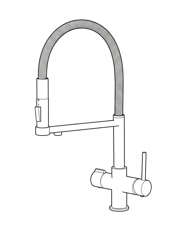 Modern 3-way tri flow kitchen tap with a corrosion-resistant stainless steel body. The Rio Tap delivers hot, cold, and filtered water through separate channels. Features a pull-down sprayer, dual lever control, and a 360° swivel spout. Fully filter compatible, and ready for reverse osmosis or under-sink water filter systems. Built for performance and modern design.