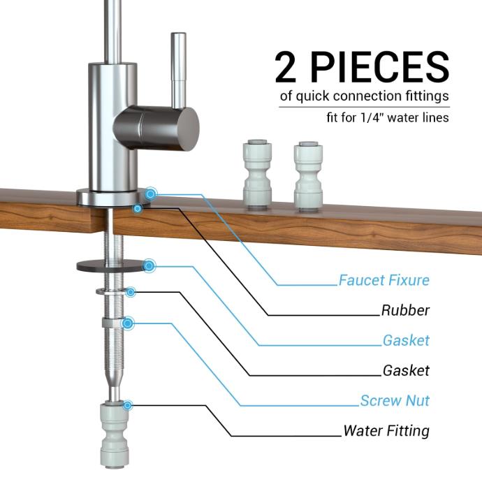 Works with most under-sink and reverse osmosis setups.