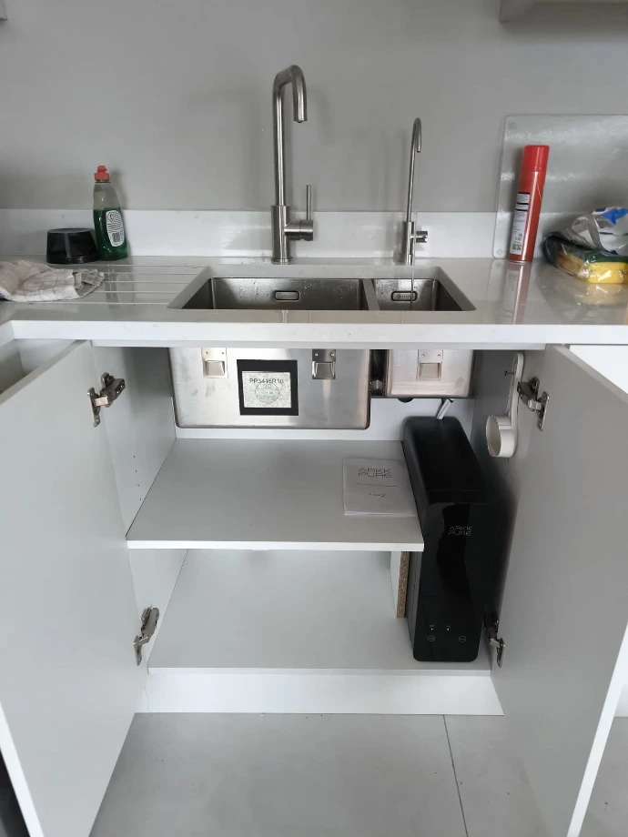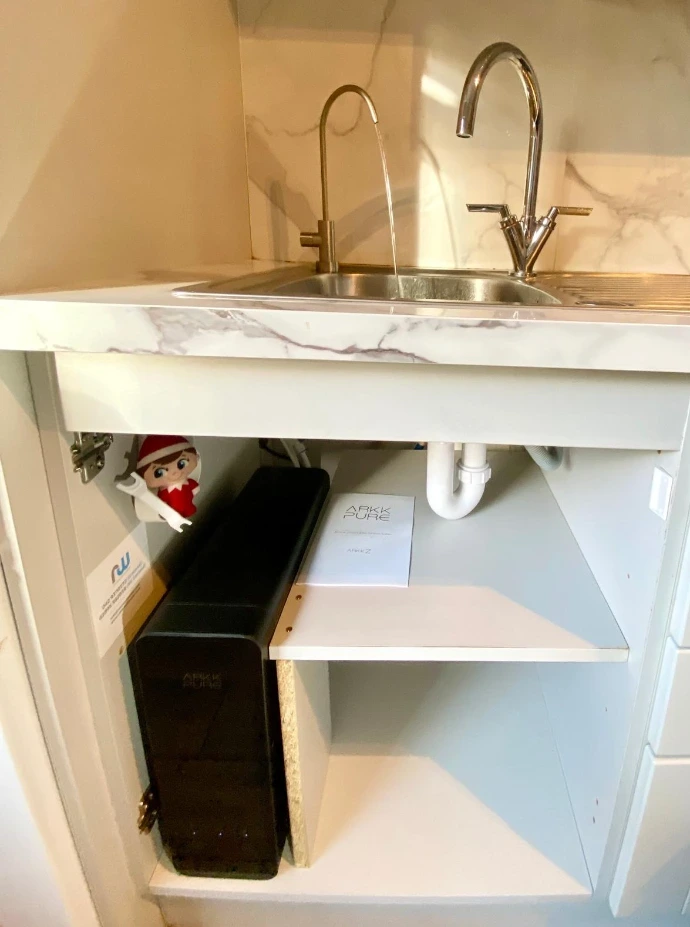 Unlike traditional filtration systems, Arkk Z is designed to fit seamlessly beneath your sink — freeing up room for storage and simplifying installation.